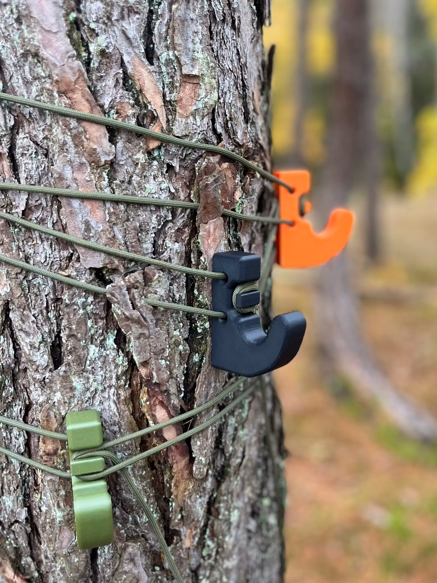 SkogsGalten är en stark och smidig krok framtagen för att ge dig en självklar plats att hänga upp din utrustning oavsett om du åker skidor, jagar, campar eller jobbar i skogen. Med den medföljande paracord-linan fäster du den snabbt runt ett träd eller annat fäste, och slipper lägga något på marken igen.